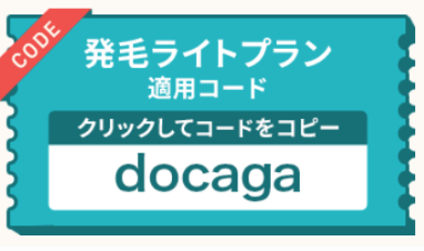 発毛ライトプラン12か月プランのお薬代が適用となります。予約ページのコード欄に必ず「docaga」とご入力ください。おー人様一回限り。表示金額で購入するためにはコードの入力が必要です。